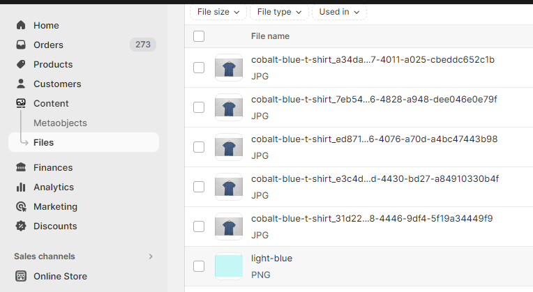 1. Go to the Shopify dashboard and upload the image in Content -> Files\ <br>